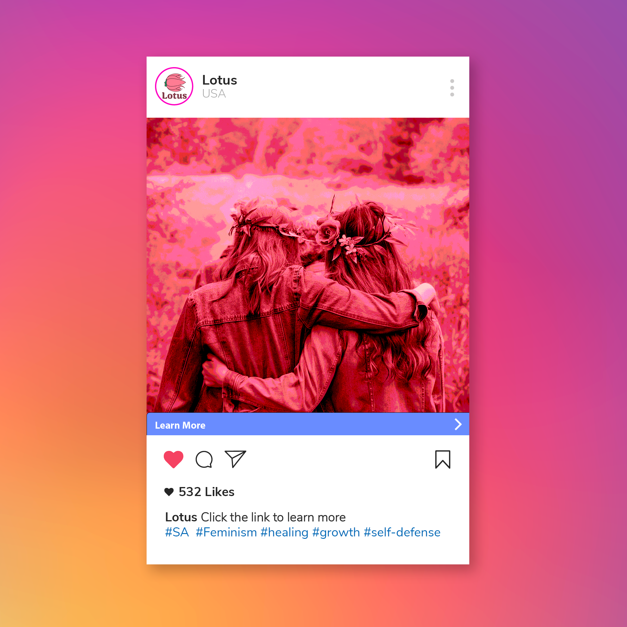 Since Lotus is an online-based program, it is vital to have ads for the social media we are active on. It is also crucial that more women and colleges find the program and adapt it into their lives or colleges. The social media’s main function is to advertise the program and drive more women to seek us out and join the community.